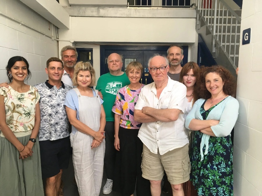 Rakhee Thakrar, Philip Olivier, Mark Elstob, Issy Van Randwyck. Trevor Cooper, Linda Newton, David Calder, Mark Oosterveen, Jessica Regan and writer/director Helen Goldwyn in ‘Human Kind’.