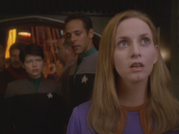 Bashir has Sarina accompany her to meet up with friends like O’Brien, Ezri, Odo and Kira in Quark’s. Sarina also gets the hang of playing dabo at the dabo table, though she almost loses Quark’s money.