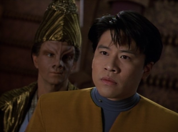 Incidentally, Martha Hackett as Seska makes an appearance in this ‘Voyager’ episode. She’s the transporter chief in the episode. It’s intriguing how limited her role is here before the next episode.