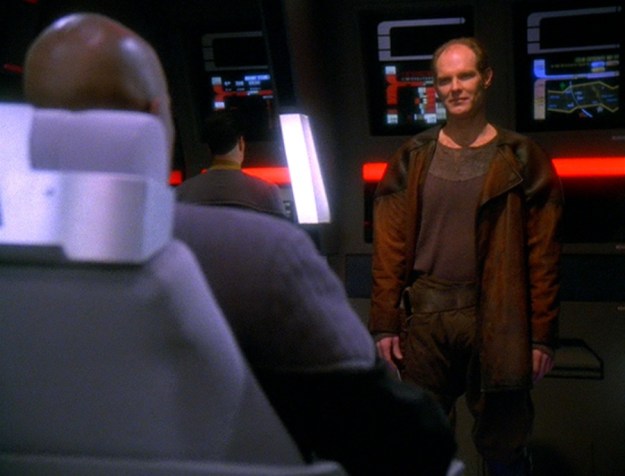 Incidentally, there’s a new holo-communicator introduced aboard the Defiant. Sisko talks to people from another ship on the Defiant’s bridge via hologram instead talking to them on the viewscreen. 😐