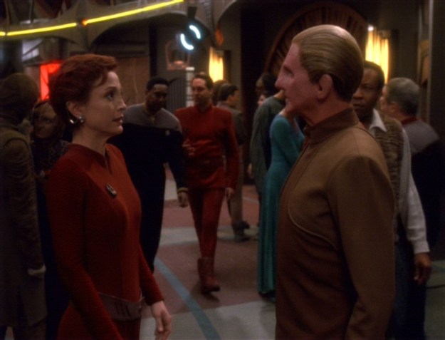 Kira reassures Odo that her trip to see Shakaar was strictly business and that she’s not seeing him anymore. And…you know what? Watch the scene between Odo and Kira, as it’s a pretty good scene.
