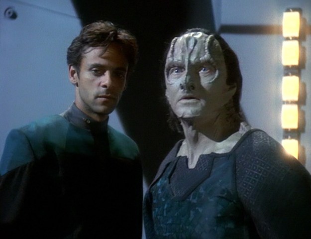 There’s also Carrie Stauber as the female Romulan prisoner aboard the internment camp. Soon, Garak, Worf, Bashir, the female Romulan and every other prisoner get beamed out to the runabout.