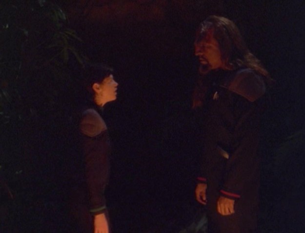 Whilst on the planet, Ezri and Worf camp for days before they get into an argument about Jadzia. There’s even mention of Captain Body, a former flame of Jadzia’s which Worf becomes jealous by. 😐