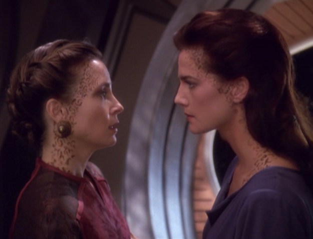 But Jadzia turns the offer down, saying that she can handle this. Kira, Worf and Jadzia welcome the Trill scientists aboard and this is where Jadzia Dax and Lenara Kahn have their first meeting together.