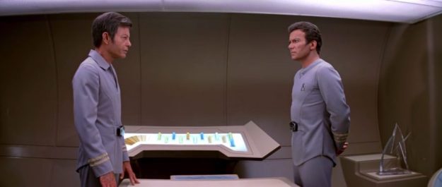 Also, I get the impression that director Robert Wise likes lots of reaction shots of the characters when they see what’s going on as they travel through space aboard the Enterprise. A lot of the time, we see characters looking awed and going “WOW!” when they look on the Enterprise view-screen and this was tiring.