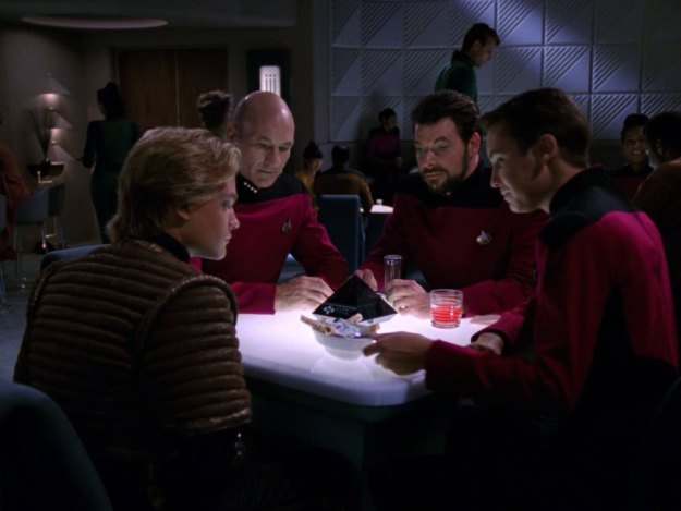 There’s also a scene in Ten Forward where Jono meets Wesley and accidentally smashes a bowl of ice cream/banana split all over him. It’s a very funny scene and I laughed out loud when I watched it.