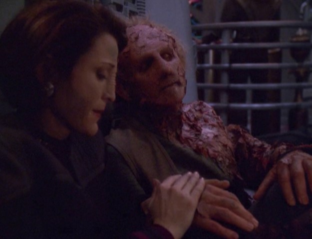 En route to a Dominion space station, Damar receives word and is upset his family’s been executed by the Dominion, being led by Salome Jens as the Female Changeling and Jeffrey Combs as Weyoun.