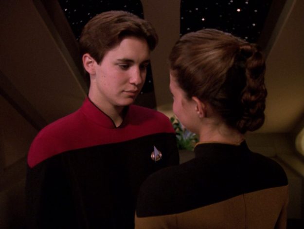 It was nice to see Wesley back aboard the Enterprise since his final regular appearance in ‘Final Mission’. Wesley is on leave from Starfleet Academy as he comes to reunite with his friends and family.