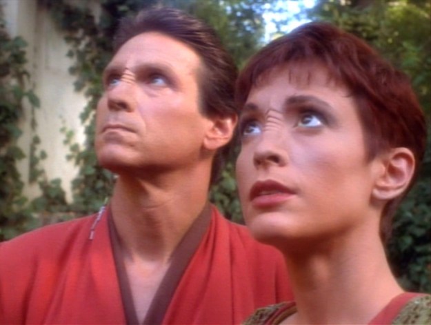 Meanwhile, Kira and Dax’s starfighter crash-lands to Bajor after getting hit by a fighter. Kira gets injured, but she’s brought safely to Vedek Bareil’s monastery where he assists to give their vital proof.