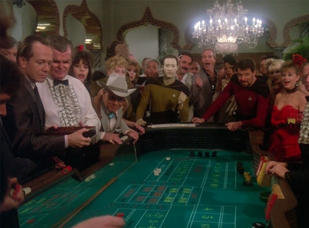 Data gets to play out at the casino table when he, Riker and Worf are trying to win money in order to buy the hotel. This seems to be the answer on how to get out of the hotel. What a surprise that is!!!