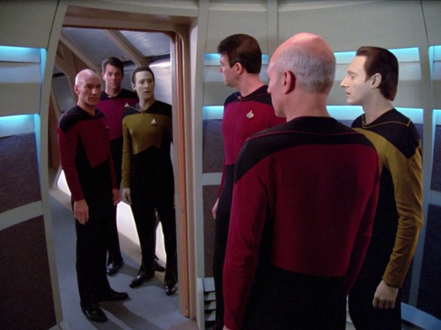 There are soon three Datas in the same room when they’re trying to solve the issue of the time experiments. It was confusing, especially when all three Datas came together and stop the madness.