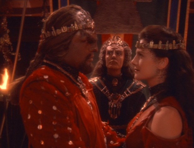 This is it! This is the episode where Worf and Jadzia finally get married. It’s been teased about throughout Season 5 and the early part of Season 6 of ‘DS9’, but they finally get married in this story.