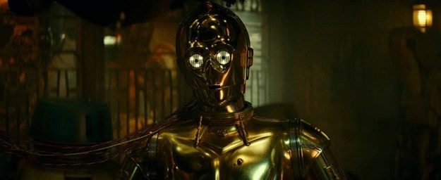 When he’s about to go offline and have his mind wiped from translating what’s on the Sith dagger, he takes ‘one last look’ at his friends, Rey, Finn and Poe. Mind you, I don’t think C-3PO has known Rey, Finn and Poe long enough to justify them as friends, especially when Poe has been rude to him.