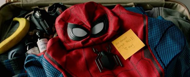 Especially when there’s a posit note attached to the suit. But a security lady doesn’t seem to be surprised by Peter’s Spidey suit in the suitcase. She was more concerned about the banana he had, which, I didn’t get. Why would the security lady be ‘no banana’? Is it because bananas look like guns?