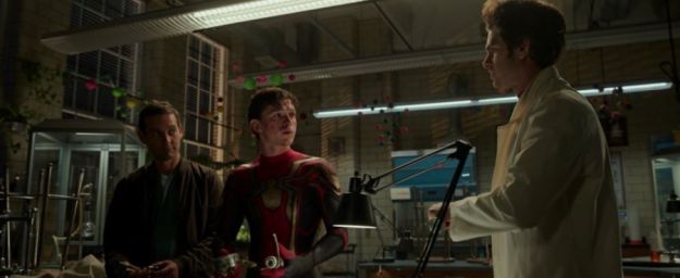 So, to see Andrew’s Spidey and Tom’s Spidey be curious and asking questions about Tobey’s Spidey’s organic web-shooters was fun to watch during the movie. It gently mocks the idea; but it doesn’t ridicule it or make it seem stupid. It’s self-aware and it’s in a light-hearted manner, not a critical one.