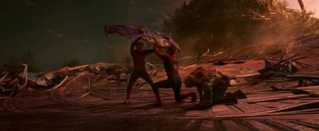 This is especially when Tobey’s Spidey and Andrew’s Spidey share their grief and loss of losing their Uncle Ben and Gwen Stacy to Tom’s Spidey when he loses his Aunt May (more on this later). I liked the moment when Tobey’s Spidey stopped Tom’s Spidey from killing the Green Goblin for revenge. 🙂