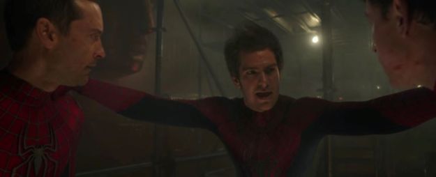 The moment where Andrew’s Spidey said, “I love you, guys!” and Tobey’s Spidey and Tom’s Spidey replied, “Thank you” was a joy to watch as well. You don’t see that happen between the Doctors in ‘Doctor Who’. I imagine that bit was improvised between the three ‘Spider-Man’ actors in the film. 🙂