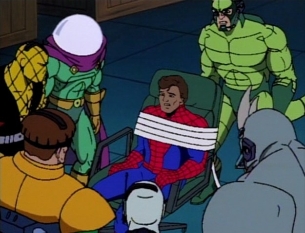 In ‘Battle of the Insidious Six’, Spidey gets defeated by the Insidious Six and soon has his mask taken off to be revealed as Peter Parker. The six villains are surprised by this but Doc Ock susses out that Peter took on the Spider-Man mantle in order to rescue Aunt May and says he is not the real Spidey.