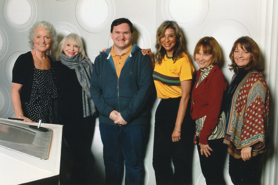 Tim Bradley with Louise Jameson, Katy Manning, Shobna Gulati, Janet Fielding and Sarah Sutton at ‘Science of the Time Lords’, National Space Centre, Leicester, January 2019