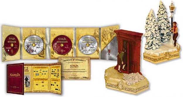 Disc 1 contains the extended movie with additional scenes and features; Disc 2 contains ‘Two Worlds of Narnia’ (from the original DVD release); Disc 3 contains ‘C.S. Lewis – Dreamer of Narnia’ and Disc 4 contains ‘Visualizing ‘The Lion, the Witch and the Wardrobe’: The Complete Production Experience’.