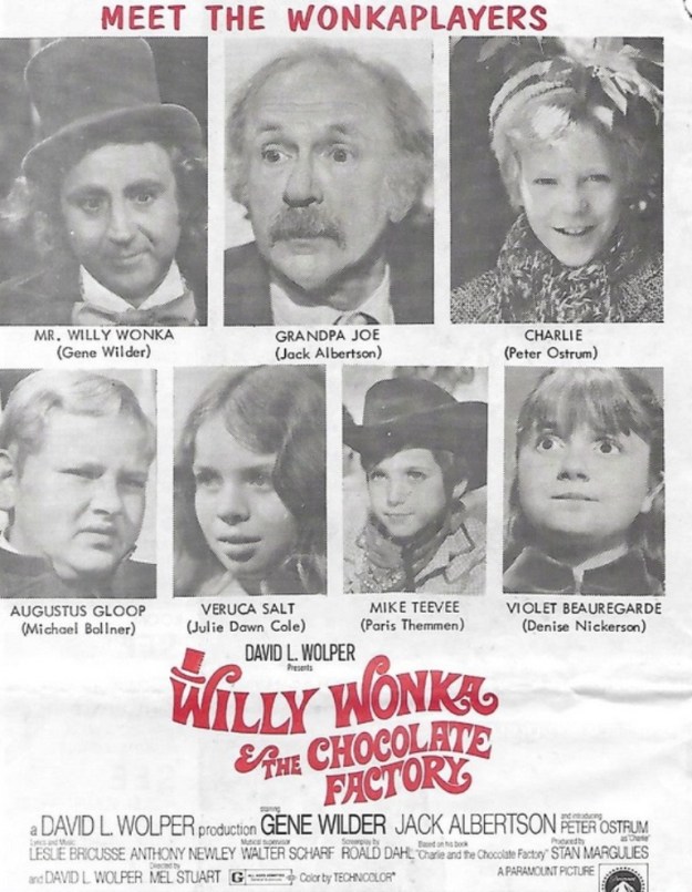 I know that seems unusual considering that the story’s about Charlie and not Willy Wonka. But it makes sense somehow, especially if they were promoting Wonka Bars at the same time they were making the film. And hey, at least it makes it convincing that Wonka Bars were being sold back then.